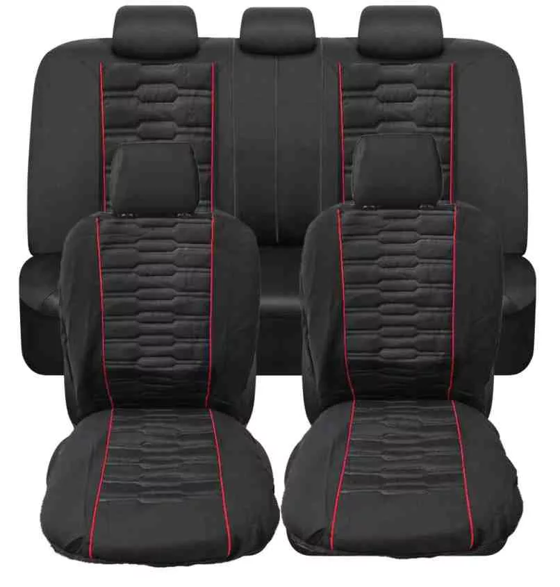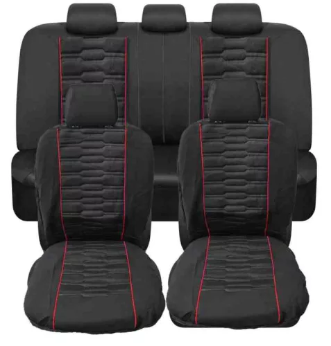 203-4R 11 részes univerzális üléshuzat szett – fekete, piros csíkokkal (légzsák kompatibilis)
