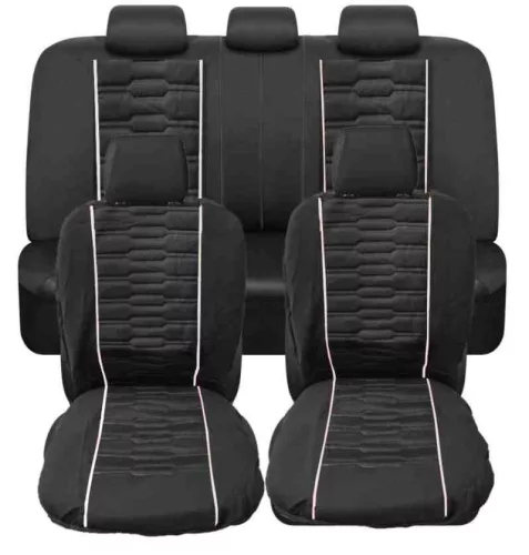 203-4W 11 részes univerzális üléshuzat szett – fekete, fehér csíkokkal (légzsák kompatibilis)